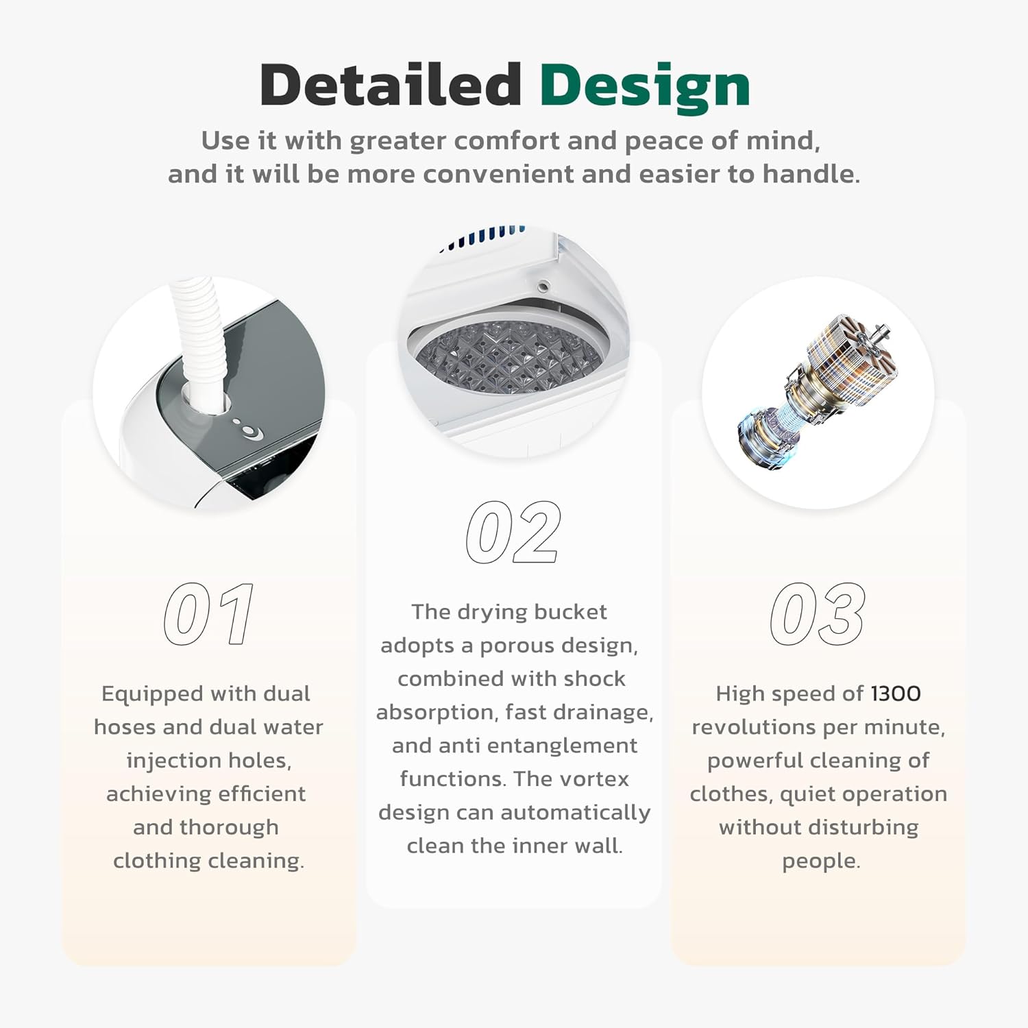 - [Powerful Performance+Sterilization Design] The portable washer machine adopts a newly upgraded copper core motor, providing a high speed of 1300RPM, 250W washing power+140W dehydration power, effectively removing stains. The silver ion penetration technology on the barrel wall deeply cleans the fibers of clothing, protecting your clothing health.