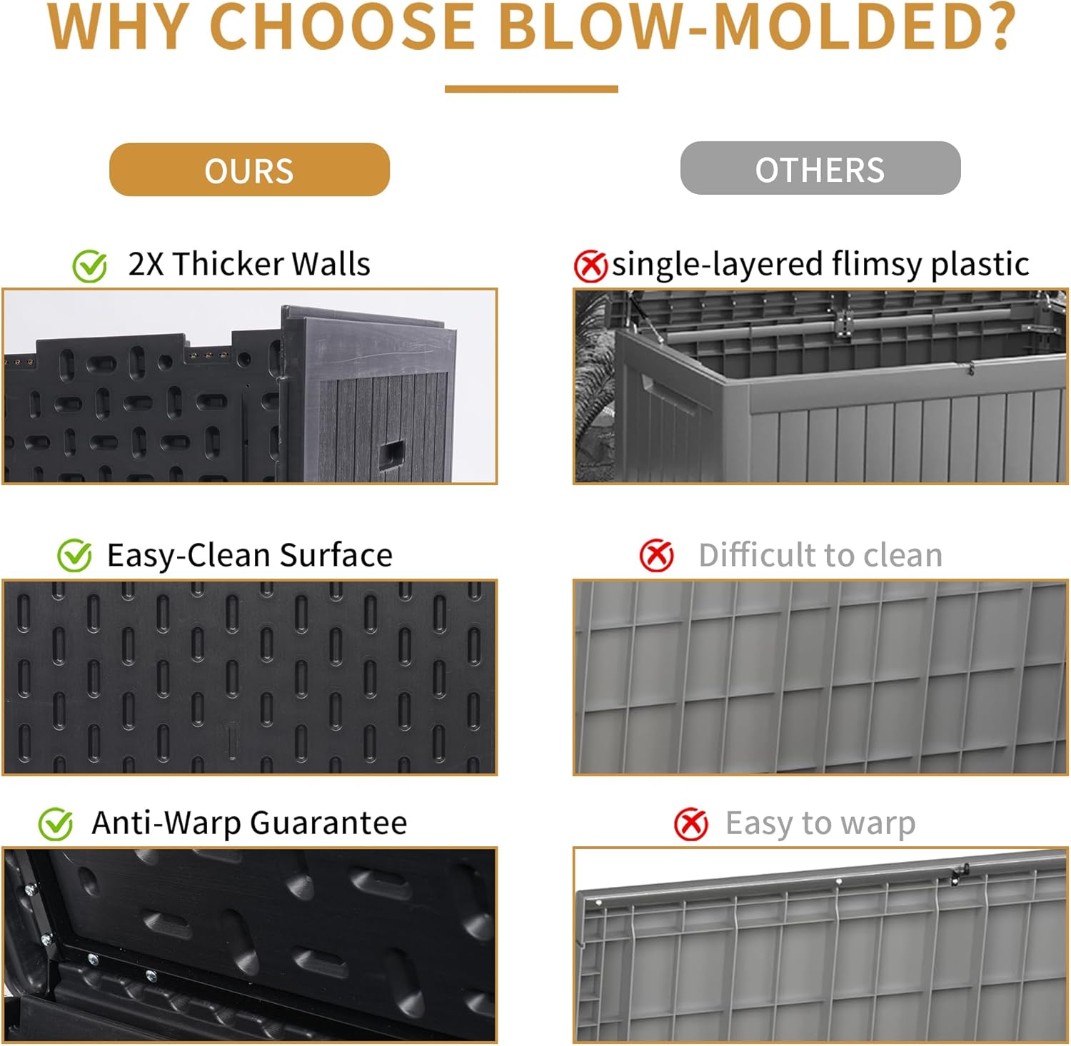 - Massive 230-Gallon Storage Capacity: With a generous 230-gallon interior, this outdoor storage container provides ample space to store patio cushions, garden tools. Keep your backyard, deck, or balcony organized and clutter-free.